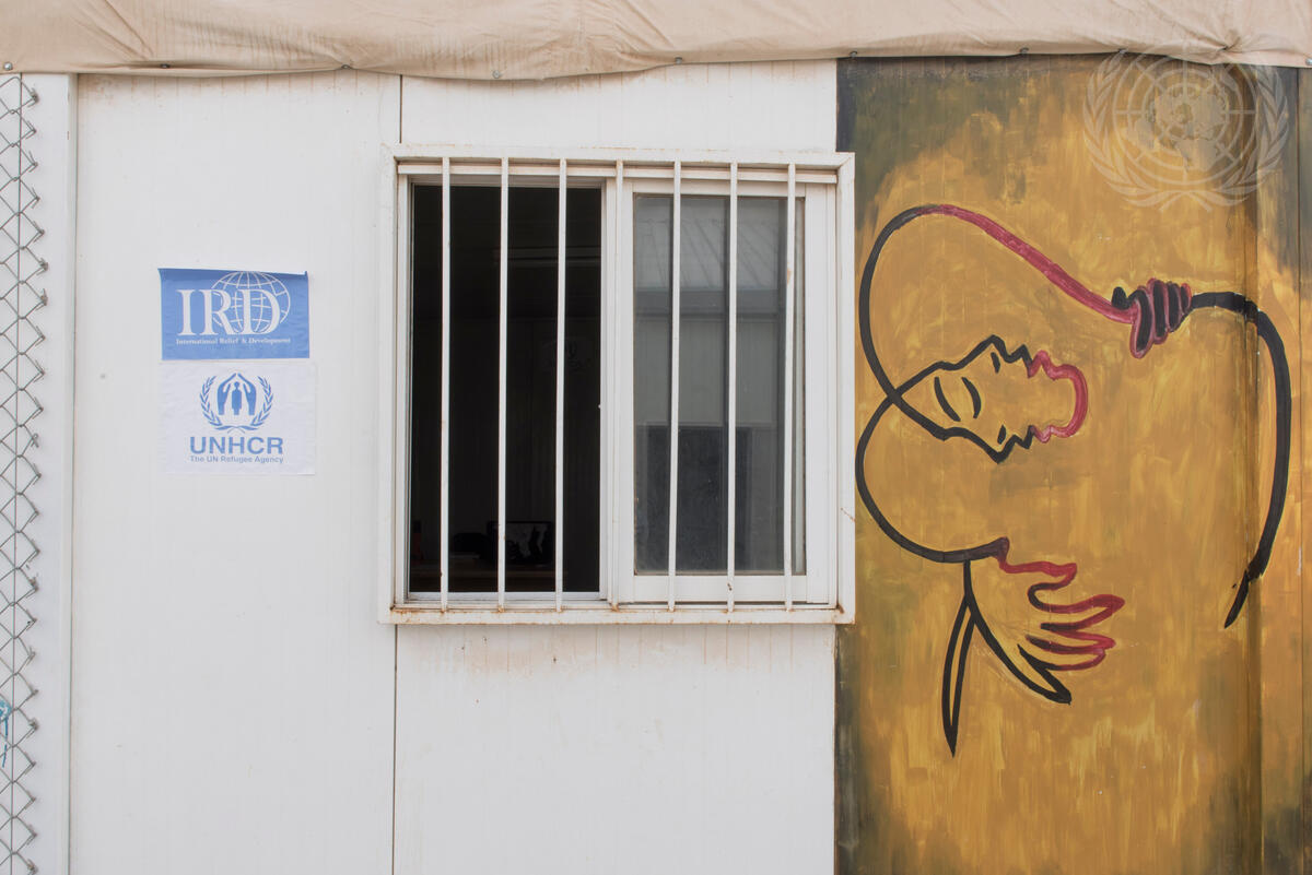 Art adorns the outside walls of a community centre at the Zaatari Refugee Camp, located near Mafraq, Jordan. The settlement has grown to house nearly 80,000 Syrian refugees since it opened in 2012.