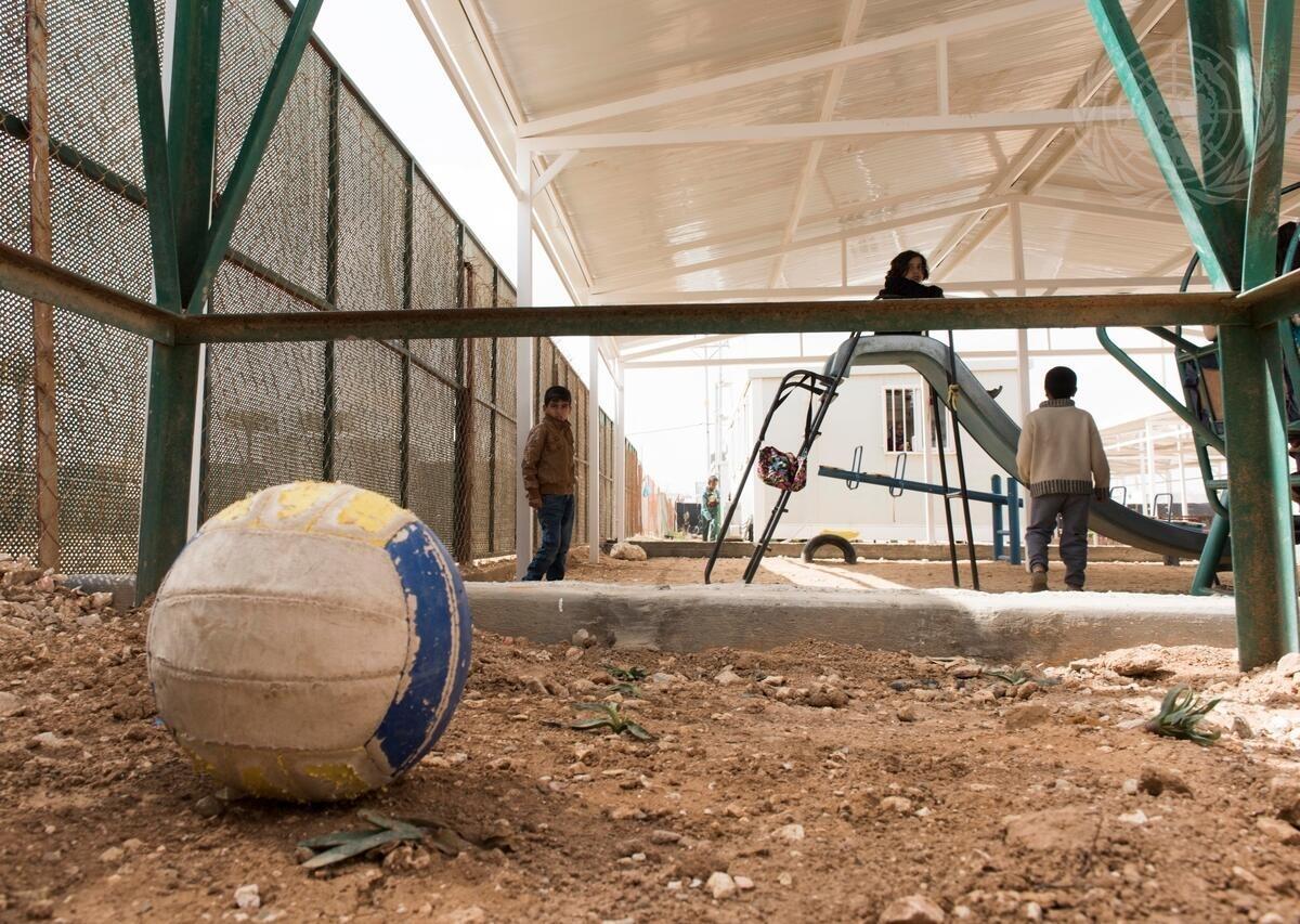 Children play in a covered playground at the Zaatari Refugee Camp, located near Mafraq, Jordan. The settlement has grown to house nearly 80,000 Syrian refugees since it opened in 2012.