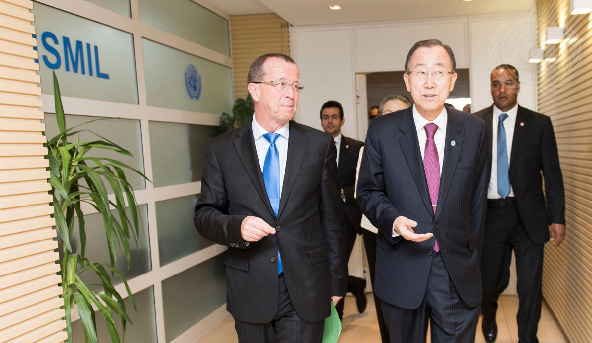 Secretary-General Ban Ki-moon (front right) in Tunis with Martin Kobler, his Special Representative and Head of the UN Support Mission in Libya (UNSMIL).