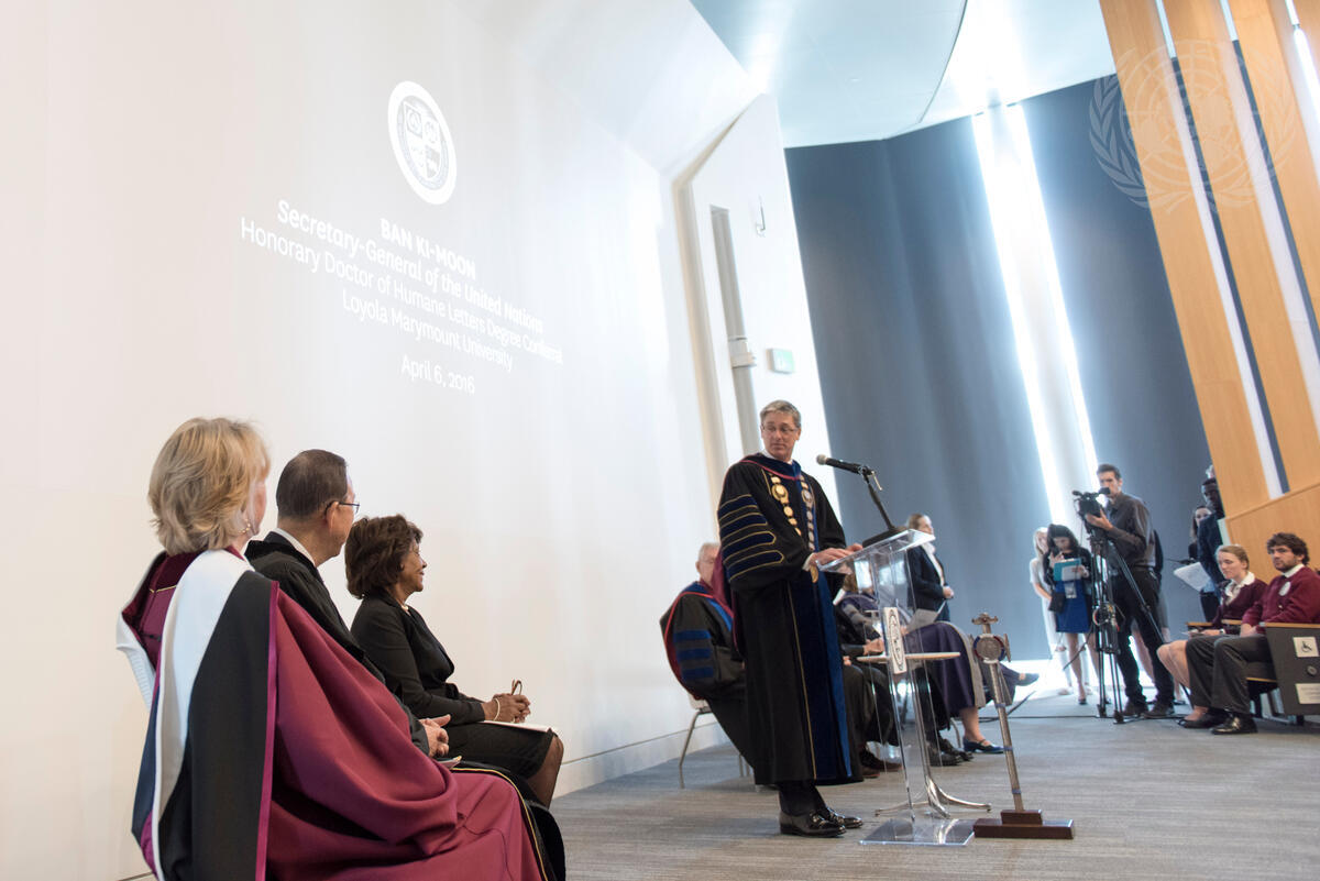 Secretary-General Ban Ki-moon received an honorary Doctorate of Humane Letters from Loyola Marymount University (LMU) in Los Angeles.