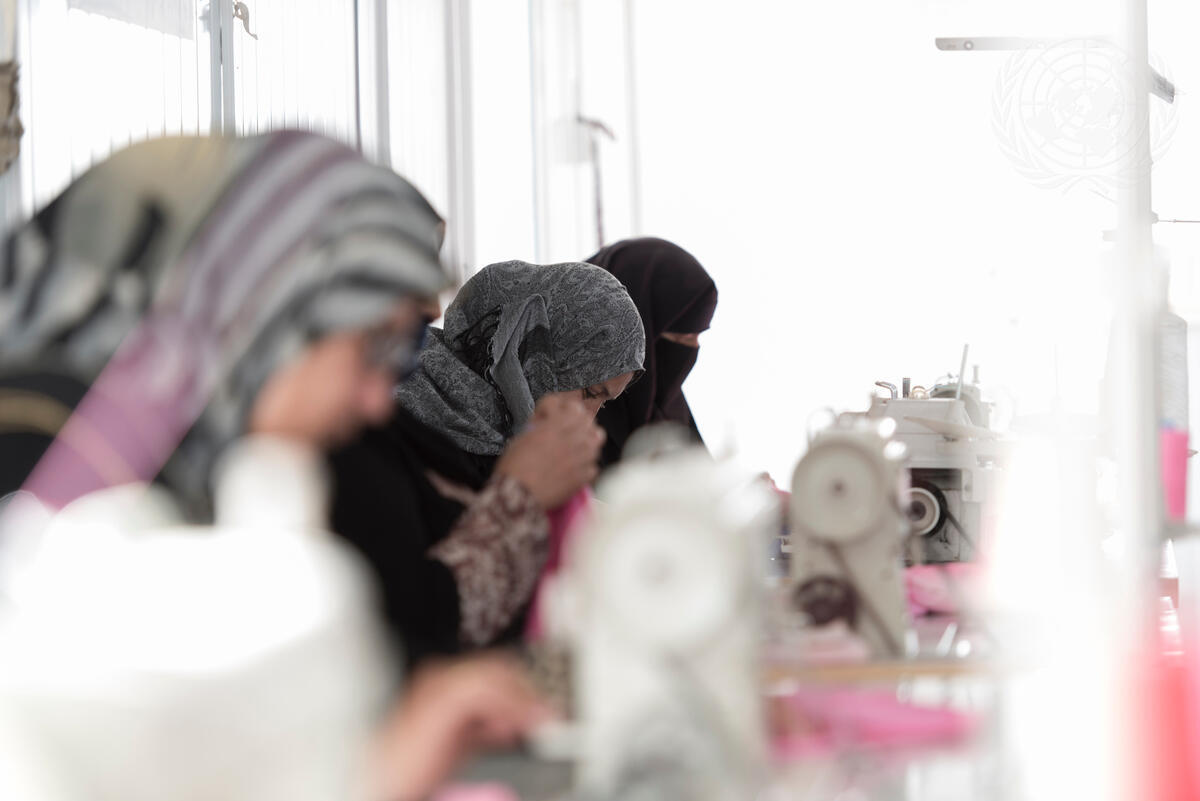 A view of a tailor shop at the Zaatari Refugee Camp, located near Mafraq, Jordan, which provides empowering employment opportunities for women at the camp. The Zaatari settlement has grown to house nearly 80,000 Syrian refugees since it opened in 2012.