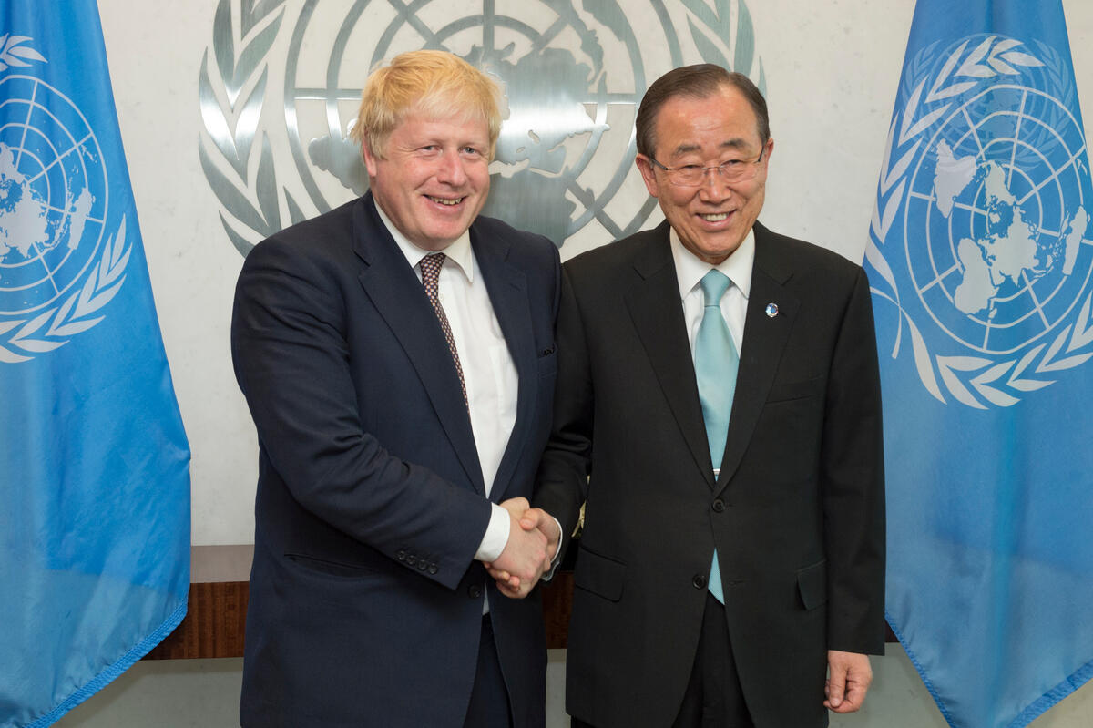 Secretary-General Ban Ki-moon (right) meets with Boris Johnson, Secretary of State for Foreign and Commonwealth Affairs for the United Kingdom of Great Britain and Northern Ireland.