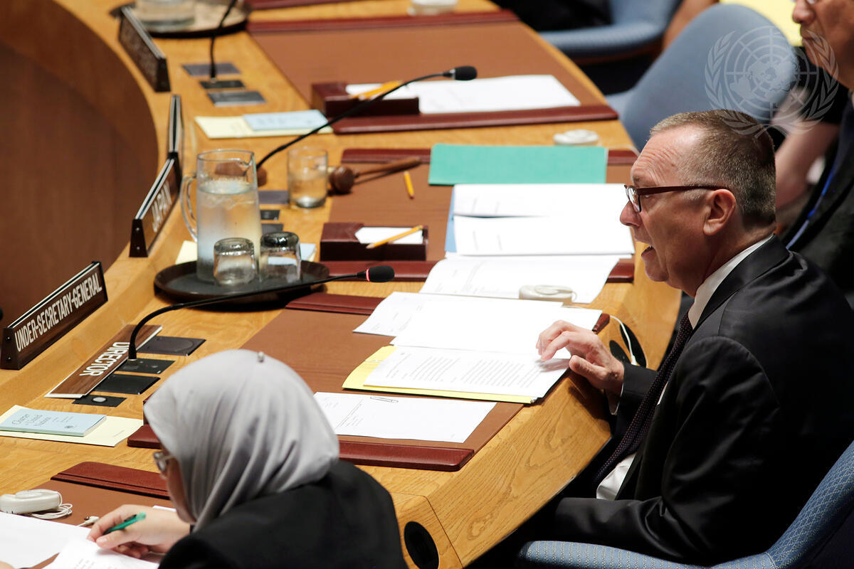 Jeffrey Feltman, Under-Secretary-General for Political Affairs, briefs the Security Council at its meeting meeting on the humanitarian, protection and security situation in the Lake Chad Basin in Africa.