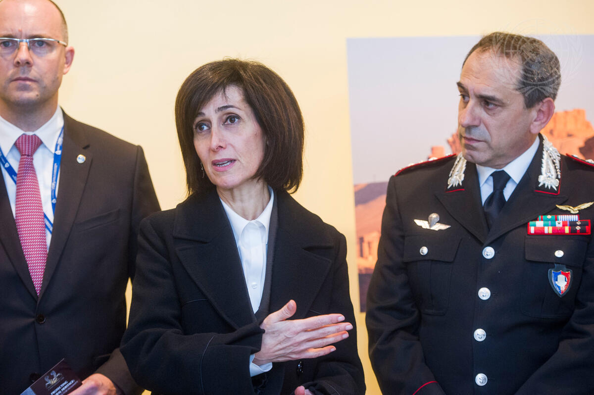 Dina Kawar (centre), Permanent Representative of the Hashemite Kingdom of Jordan to the UN, speaks at the opening of the exhibit entitled ""Protecting Cultural Heritage: An Imperative for Humanity"". The exhibit was co-organized by the Permanent Missions of Italy and the Hashemite Kingdom of Jordan to the United Nations in collaboration with the UN Educational, Scientific and Cultural Organization (UNESCO), the UN Office on Drugs and Crime (UNODC), and the International Criminal Police Organization (Interpol).