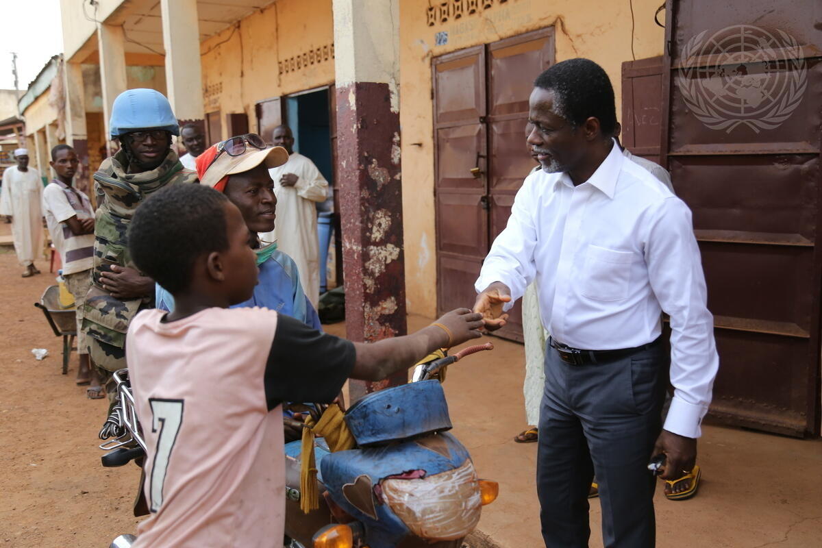 Parfait Onanga-Anyanga (right), Acting Special Representative of the Secretary-General and Head of the UN Multidimensional Integrated Stabilization Mission in the country (MINUSCA), visits the PK5, Fatima and Kina areas of the capital Bangui during the referendum.