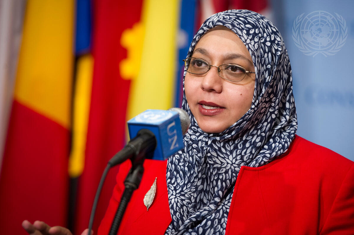 Humera Khan, Executive Director of Muflehun, a think tank specializing in preventing radicalization and countering violent extremism, speaks to journalists on the use of the internet and social media by terrorist groups. Also joining her in addressing reporters was Jean-Paul Laborde, Executive Director of the Security Council Counter-Terrorism Committee Executive Directorate (CTED).