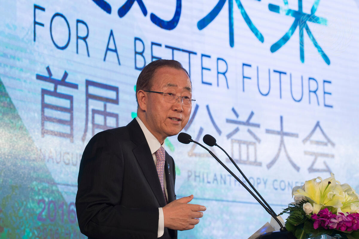 Secretary-General Ban Ki-moon addresses the inaugural Xin Philanthropy Conference, hosted by the Alibaba Foundation, in Hangzhou, China,