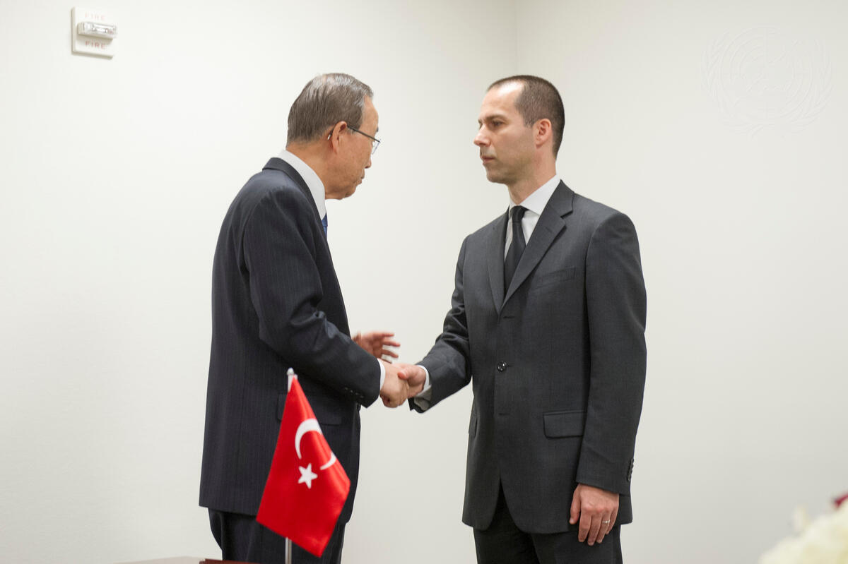 The Secretary-General (left) with Güven Begeç, Deputy Permanent Representative and Chargé d'affaires at the Permanent Mission of Turkey to the UN.