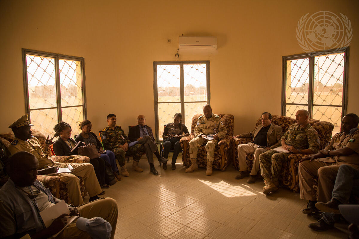 Mongi Hamdi (third from right), Special Representative of the Secretary-General and Head of the UN Multidimensional Integrated Stabilization Mission in Mali (MINUSMA), and his delegation meet with the local governor during their visit to Menaka in the northern part of the country.