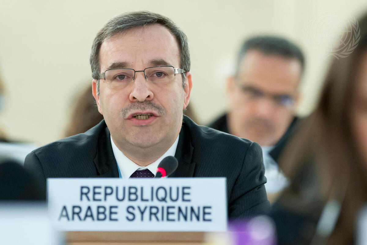 Hussam Edin Aala, Permanent Representative of the Syrian Arab Republic to the United Nations Office at Geneva (UNOG), addresses the thirty-first regular session of the Human Rights Council during its interactive dialogue with the Chairperson of the Commission of Inquiry on Syria.