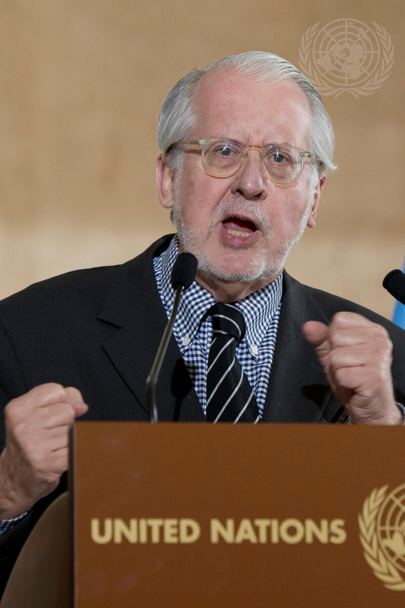 Paulo Pinheiro, Chairperson of Commission of Inquiry on the Syrian Arab Republic, briefs the press following today's interactive dialogue with the Human Rights Council at its thirty-first regular session.