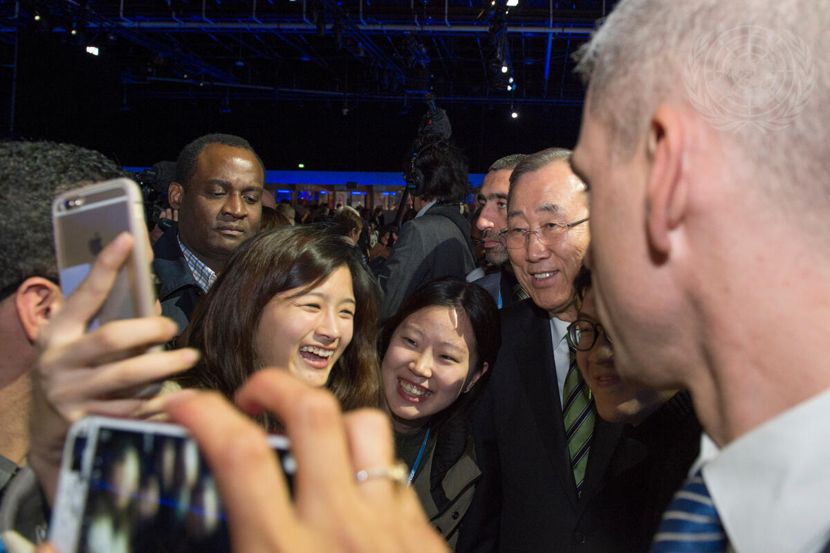 Secretary-General Ban Ki-moon (second from right) attends the high-level closing event of Climate Action Day, during which he also took photos with participants of the event.