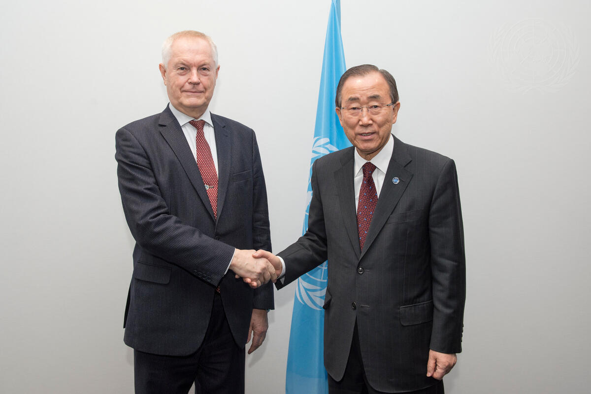Secretary-General Ban Ki-moon (right) meets with Alexander Bedritsky, Adviser to the President of the Russian Federation and Special Envoy for Climate, on the margins of the UN Climate Change Conference in Paris (COP21).