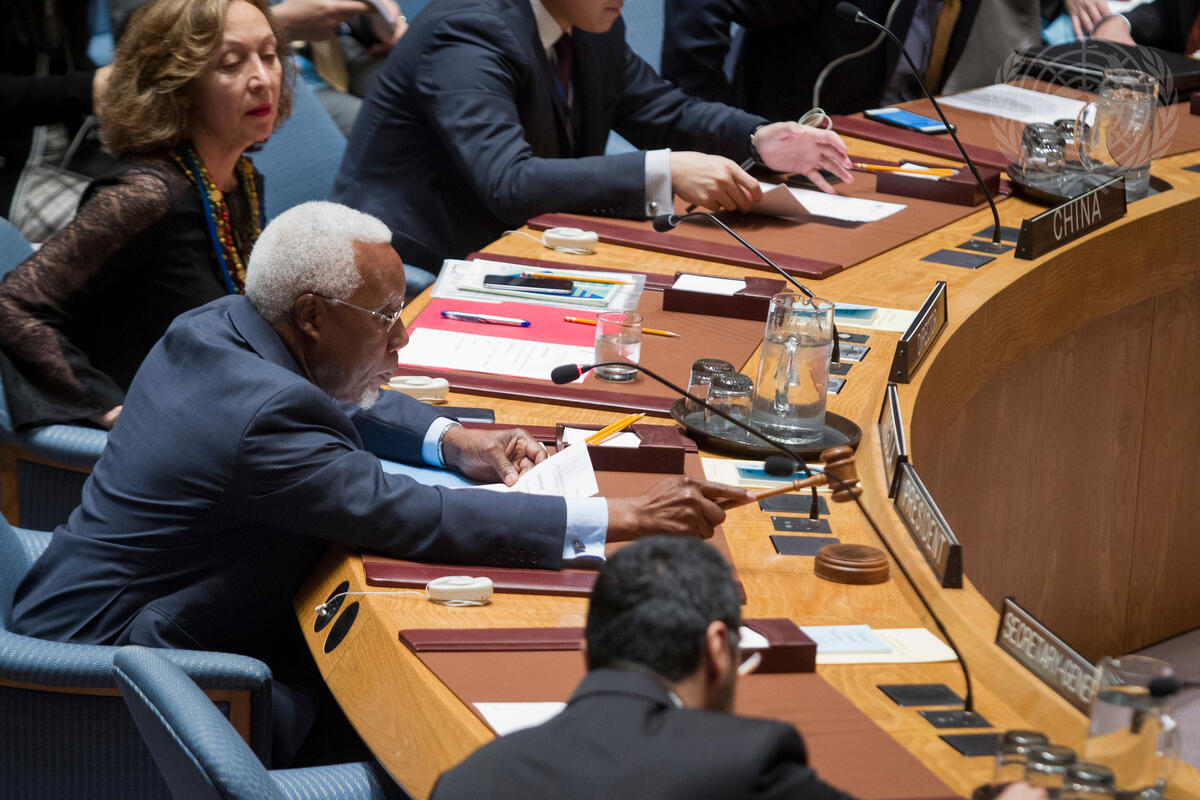 Ismael A. Gaspar Martins (with gavel), Permanent Representative of the Republic of Angola to the UN and President of the Security Council for March, chairs the Council’s meeting on the situation in Liberia.