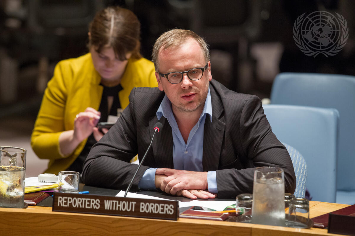 Christophe Deloire, Director-General of Reporters Without Borders, addresses the Council.