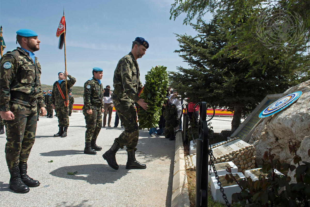 King Felipe VI of Spain lays a wreath in memory of the fallen peacekeepers of United Nations Interim Force in Lebanon (UNIFIL) during his visit to UNIFIL Sector East Headquarters in Marjayoun, Lebanon.