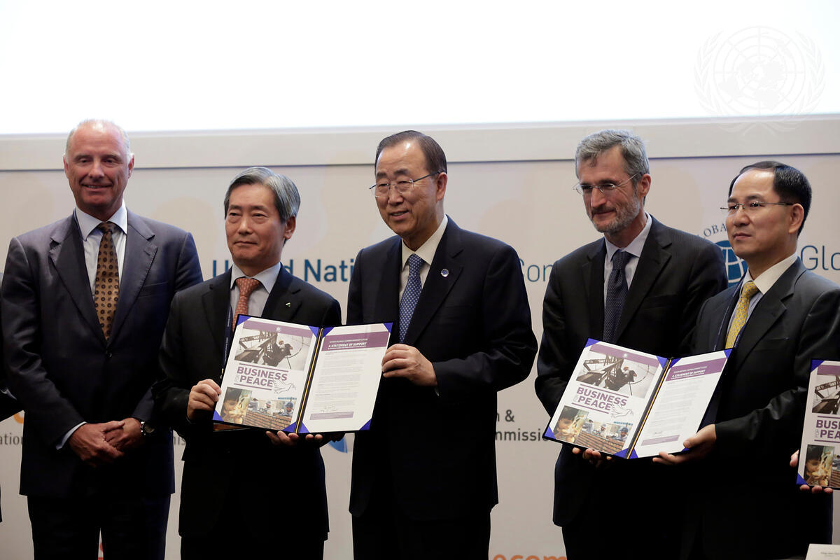 Secretary-General Ban Ki-moon (centre) during the opening ceremony of the UN Global Compact Korea Leaders Summit in Seoul, Republic of Korea. Ar centre right is Georg Kell, Executive Director of the UN Global Compact.