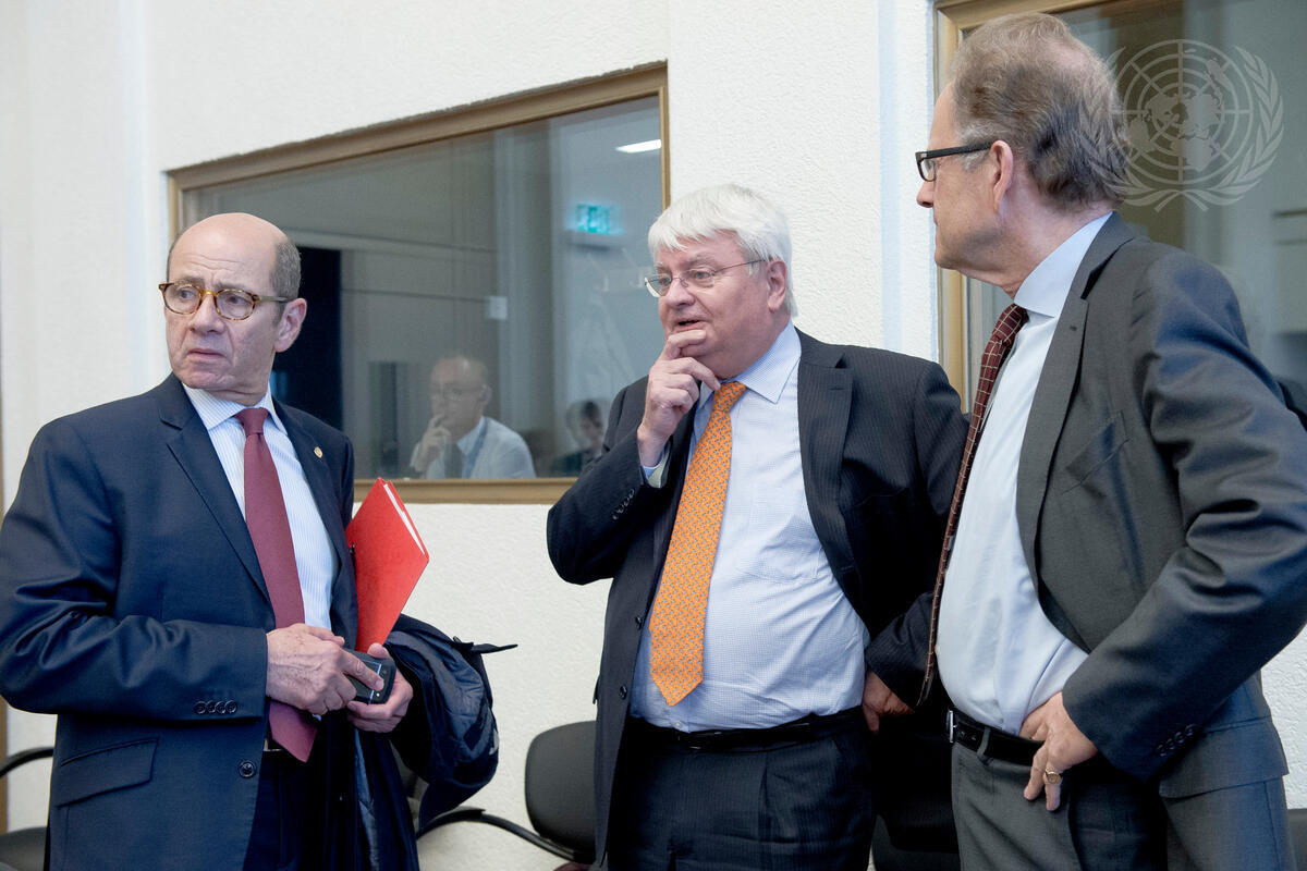 Hervé Ladsous (centre), Under-Secretary-General for Peacekeeping Operations, at the Palais des Nations with Michael Møller (right), Acting Director-General of the UN Office at Geneva (UNOG); and Ahmad Fawzi, Director, a.i., UN Information Service (UNIS) in Geneva.