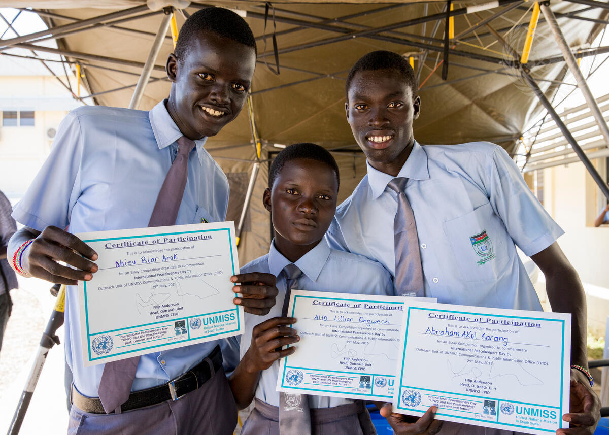 Students of the John Garang Secondary School in Juba participate in the essay competition entitled ""If I Were a Peacekeeper"" during the International Day of United Nations Peacekeepers (29 May) in Juba.