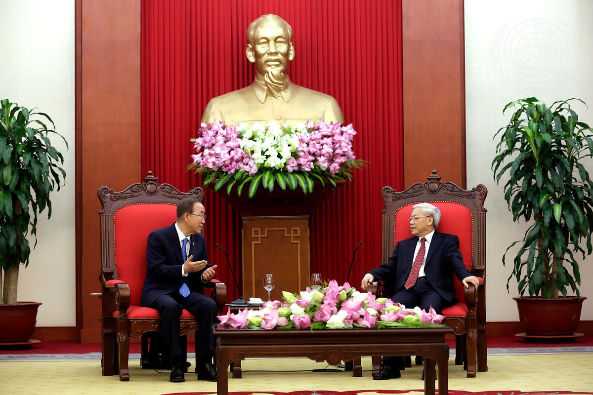 Secretary-General Ban Ki-moon (left) meets with Nguyen Phu Trong, General Secretary of the Communist Party of the Socialist Republic of Vietnam.