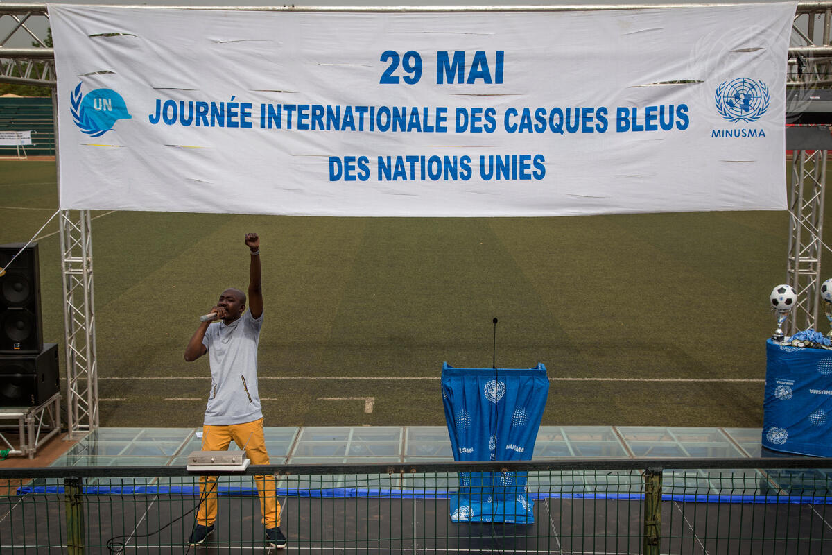 A Malian rapper sings during the International Day of United Nations Peacekeepers (29 May), held at the Mamadou Konate Stadium in Bamako.