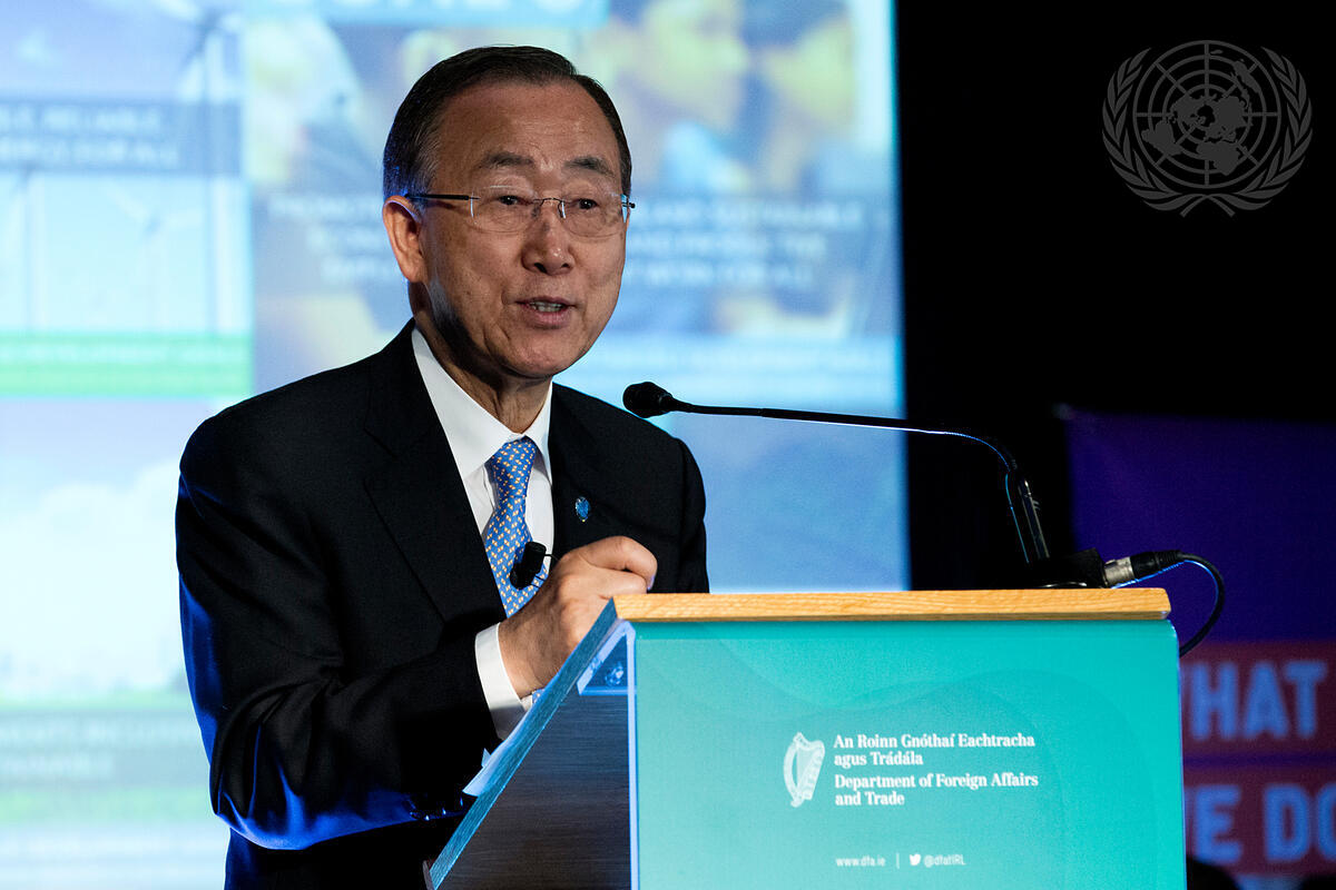 Secretary-General Ban Ki-moon speaks during the launch event of Ireland's UN Youth Delegate Programme.