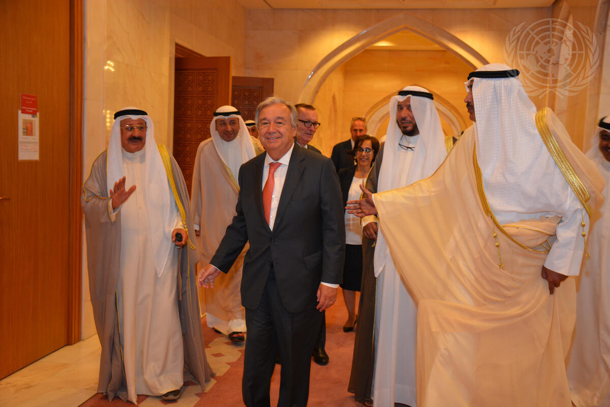 Secretary-General António Guterres (centre left) during his visit to Kuwait.