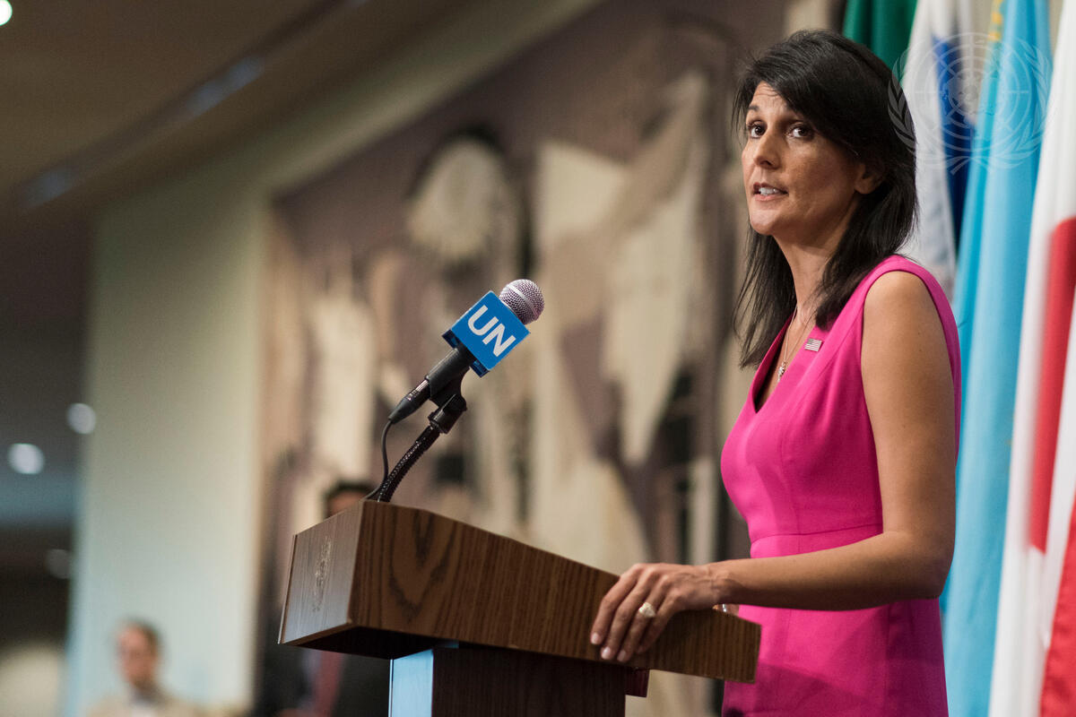 Nikki R. Haley, United States Permanent Representative to the UN, speaks to journalists on a wide-ranging number of issues, including the situation in Lebanon.