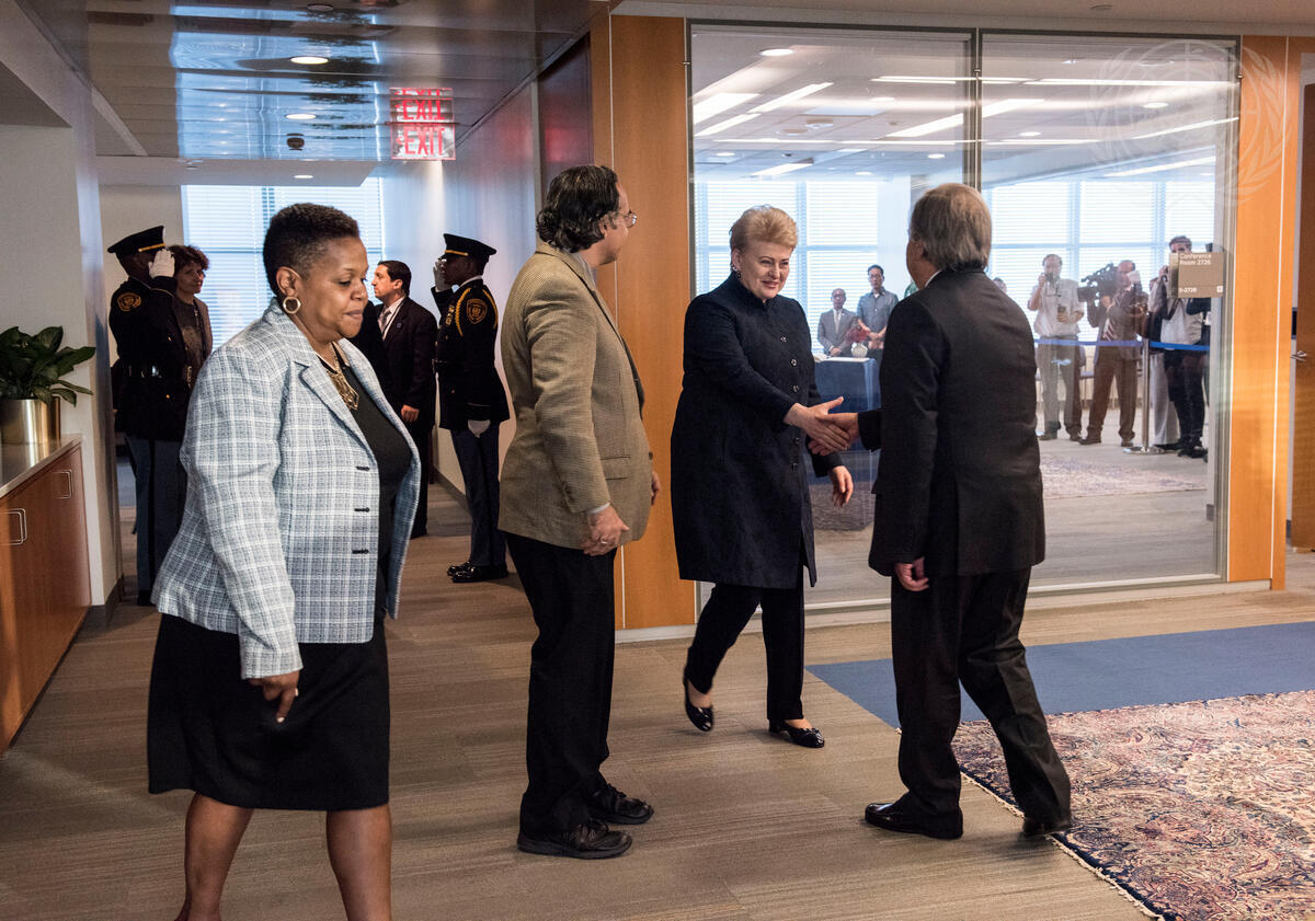 Secretary-General António Guterres (right) meets with Dalia Grybauskaite, President of the Republic of Lithuania.
