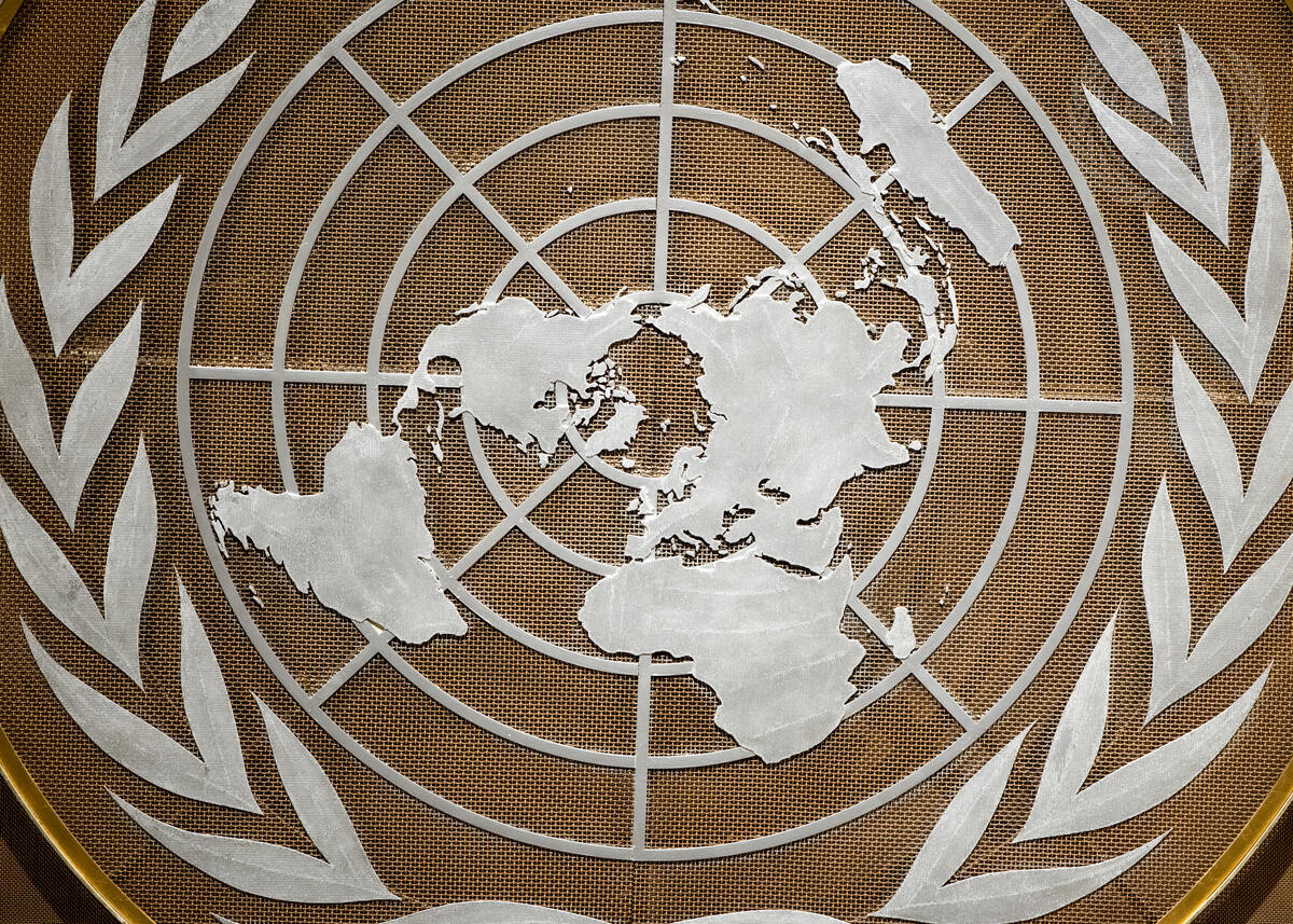 The logo of the United Nations in the General Assembly Hall, as the Assembly opens the general debate of its seventy-second regular session.
