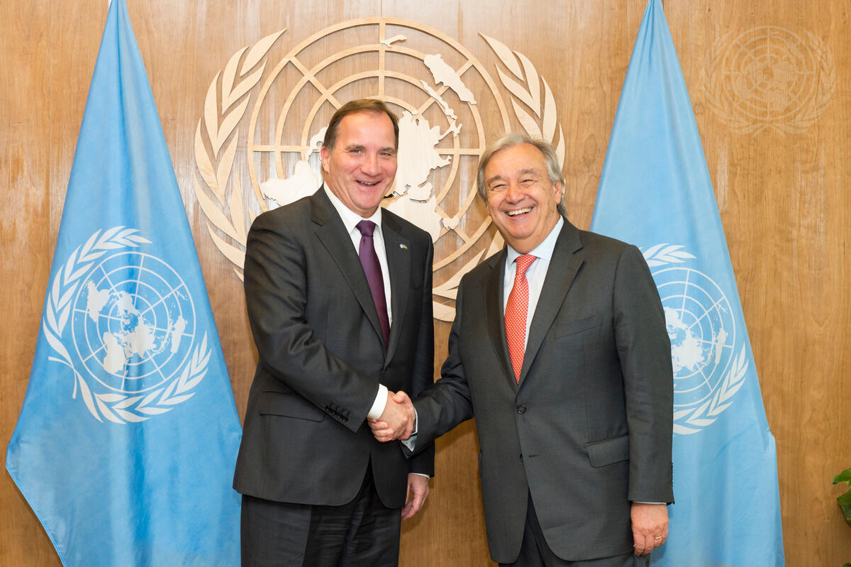Secretary-General António Guterres (right) meets with Stefan Löfven, Prime Minister of Sweden.
