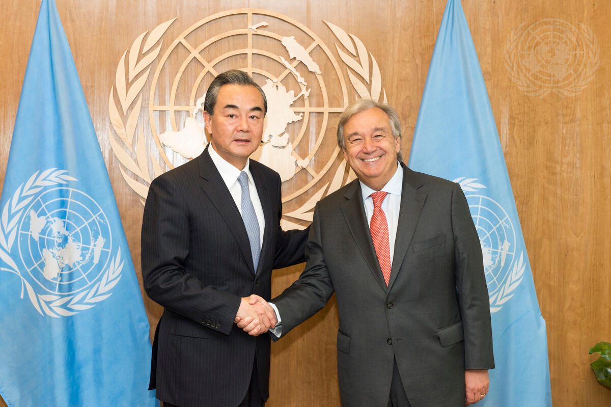 Secretary-General António Guterres (right) meets with Wang Yi, Minister for Foreign Affairs of the People’s Republic of China.