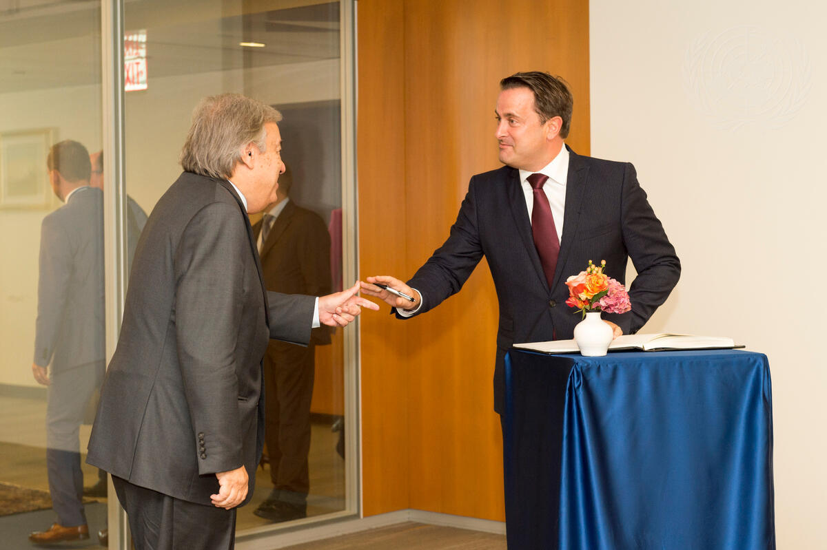 Secretary-General António Guterres (left) meets with Xavier Bettel, Prime Minister of Luxembourg.
