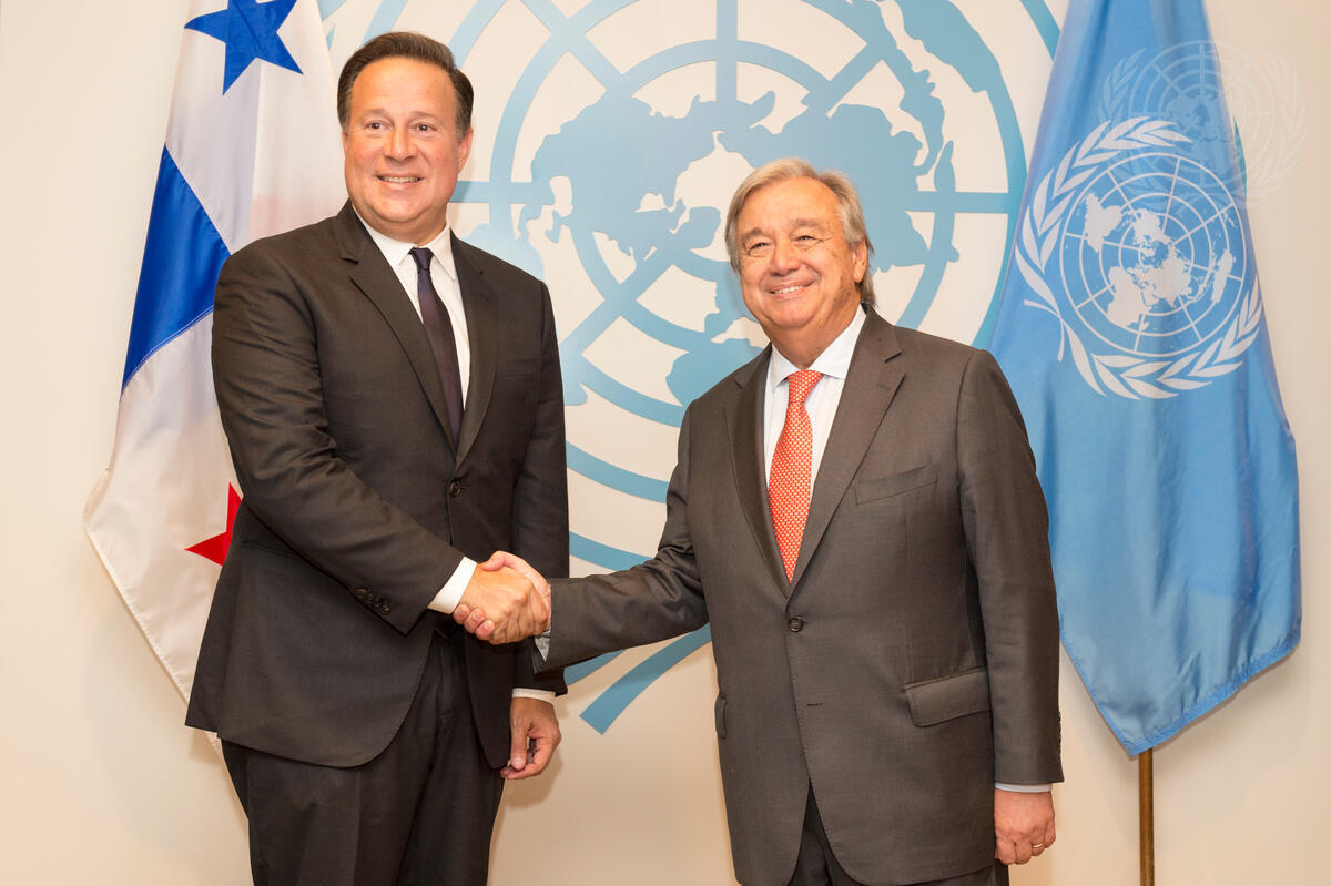 Secretary-General António Guterres (right) meets with Juan Carlos Varela Rodríguez, President of Panama.