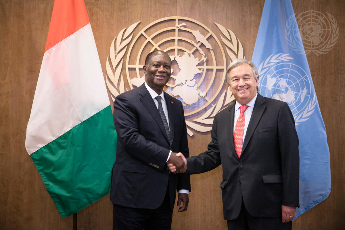 Secretary-General António Guterres (right) meets with Alassane Ouattara, President of Côte d’Ivoire.
