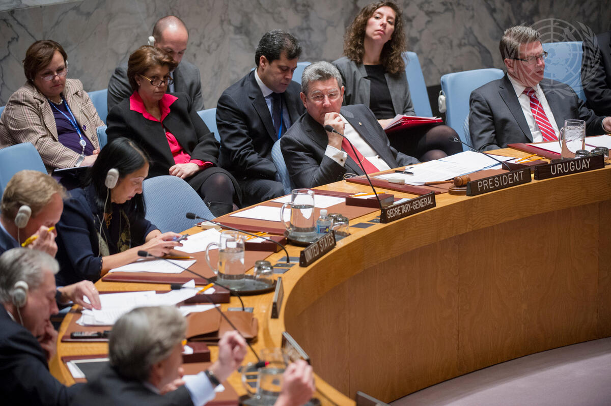 Elbio Oscar Rosselli Frieri, Permanent Representative of Uruguay to the UN and President of the Security Council for January, chairs a meeting of the Security Council on the Council's working methods.
