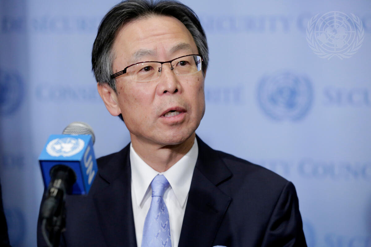 Motohide Yoshikawa, Permanent Representative of Japan to the UN, speaks to journalists following closed Security Council consultations on the serious situation arising from the launch using ballistic missile technology conducted by the Democratic People’s Republic of Korea (DPRK) on February 7, 2016.