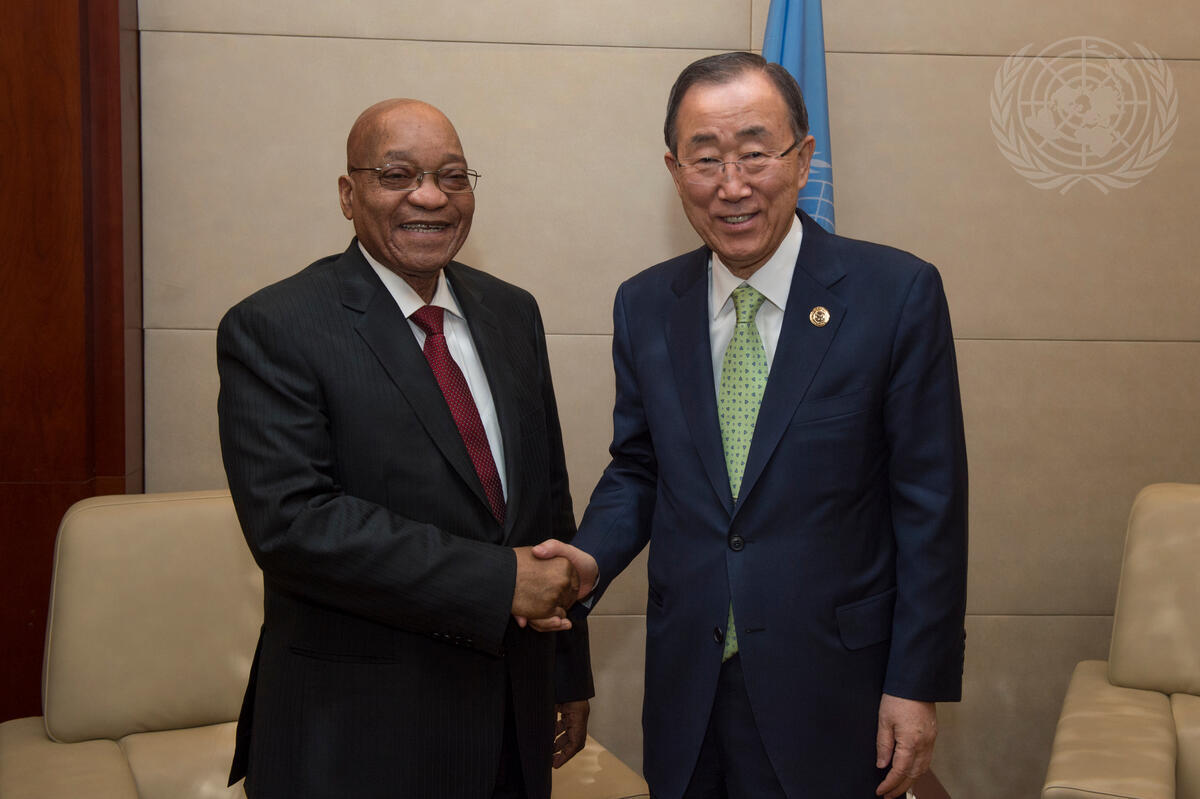 Secretary-General Ban Ki-moon (right) meets with Jacob Zuma (left), President of South Africa, during his official travel to Addis Ababa, Ethiopia, to attend the 26th African Union Summit.