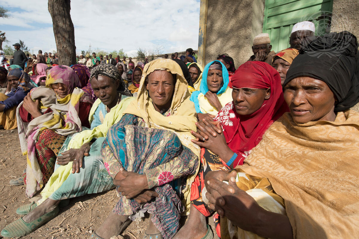 Women of the Ziway Dugda woreda, Oromia Region in Ethiopia during Secretary-General Ban Ki-moon's visit to the area affected by drought. The trip was organized by the United Nations Office for the Coordination of Humanitarian Affairs (OCHA) and the World Food Programme (WFP).
