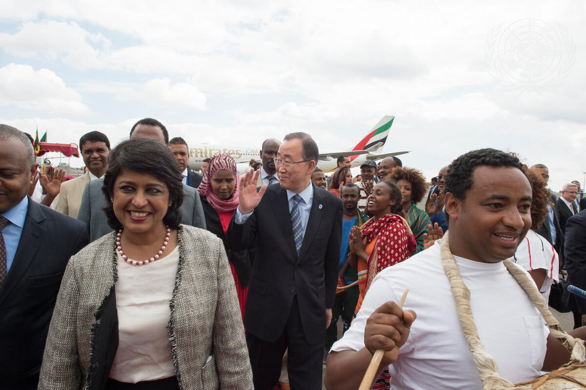 Secretary-General and Mrs. Ban Arrive in Addis Ababa
