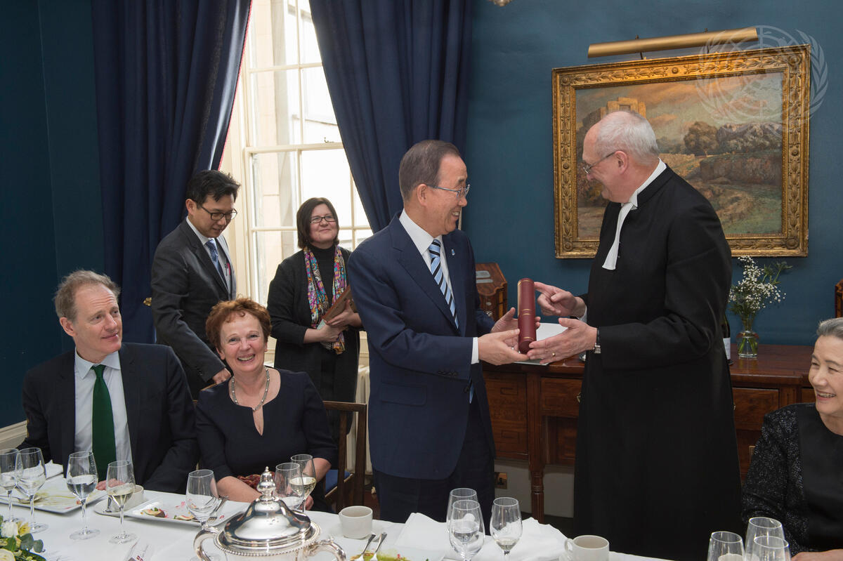 Secretary-General Ban Ki-moon received an honorary degree of Doctor of Law from the University of Cambridge in recognition of his humanitarian work, support for women’s rights and achievements in pursuit of global peace and security.
