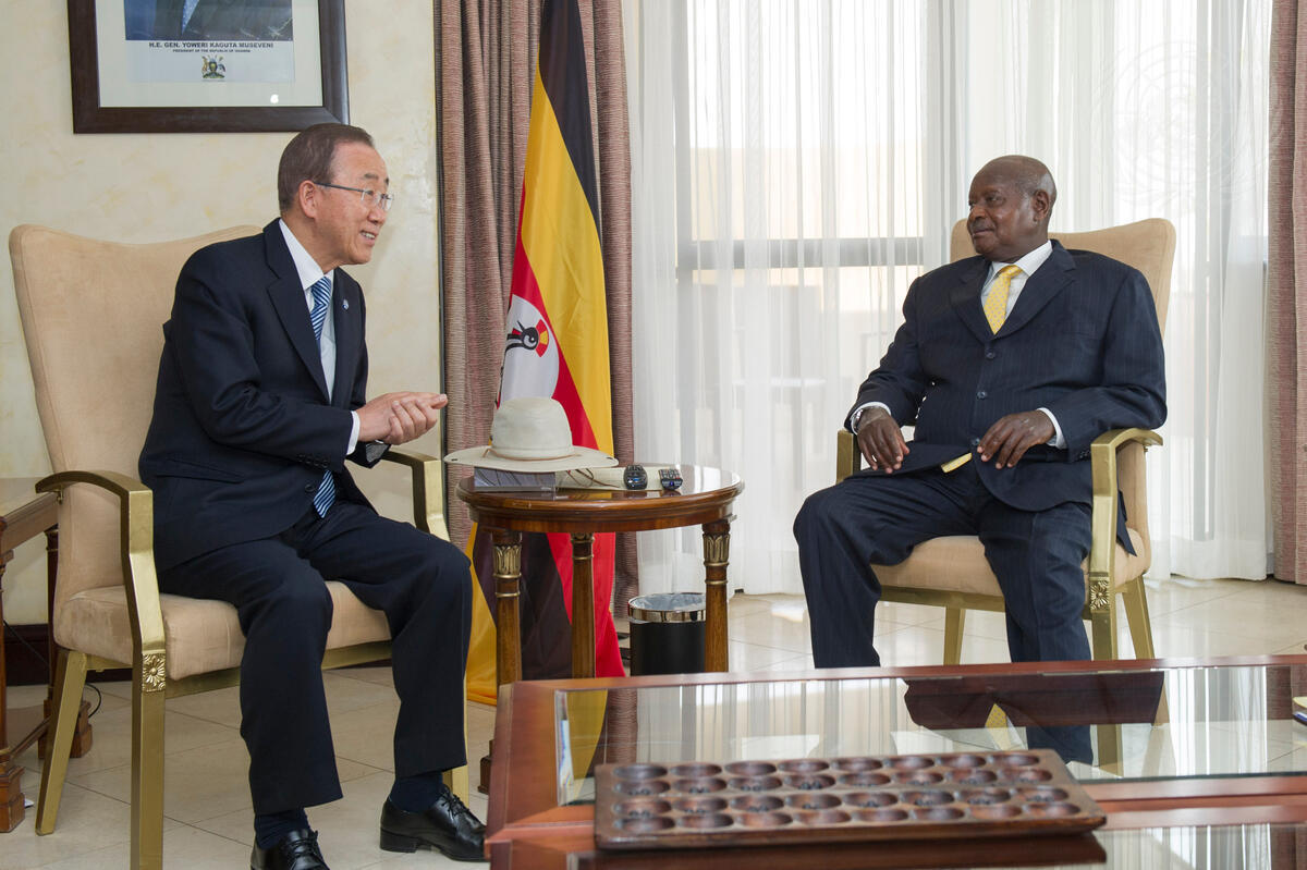 Secretary-General Ban Ki-moon (left) meets with Yoweri Kaguta Museveni, President of the Republic of Uganda, on the margins of the twenty-seventh African Union Summit, taking place in Kigali, 10-18 July 2016.