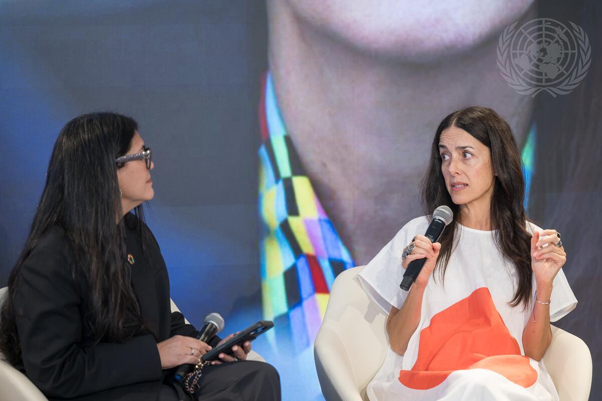 Cecilia Suárez (right), Actress and UN Global Advocate for Spotlight Initiative, discusses her advocacy to end violence against women and girls with moderator Irisaida Mendez Iriarte (left), Executive Director of the Univision Foundation. Since her appointment as a UN Global Advocate in 2020, Ms. Suárez has used her platform to amplify the voices of survivors and changemakers. Most recently, she travelled to Ecuador, where she met with survivors, activists, government leaders, and UN partners working to create a safer world for women and girls. In this one-on-one session, Cecilia reflected on her journey, the stories that moved her, and the power of art and advocacy to drive change.
