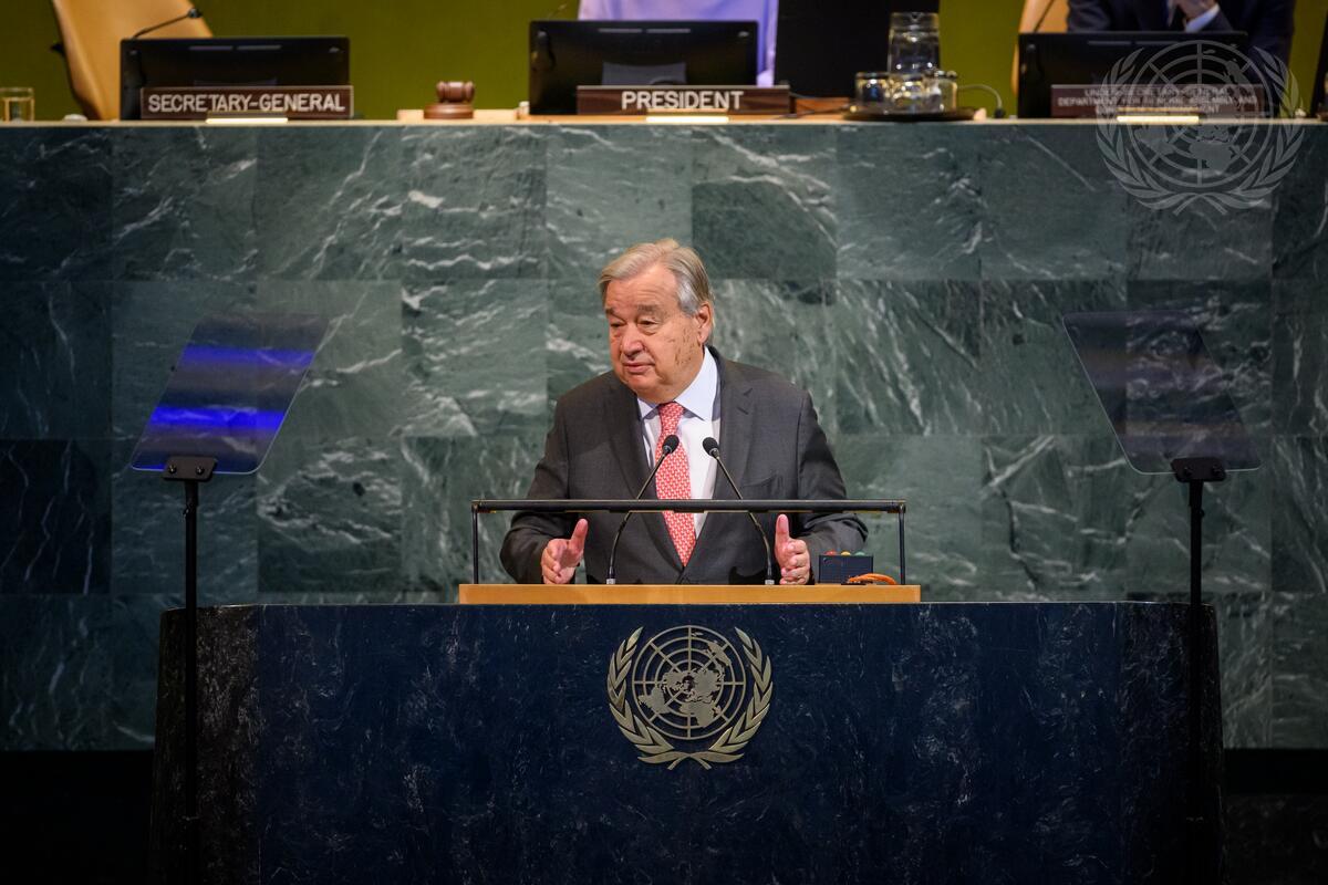 Secretary-General António Guterres addresses the high-level meeting of the General Assembly to commemorate the eightieth anniversary of the establishment of the United Nations.