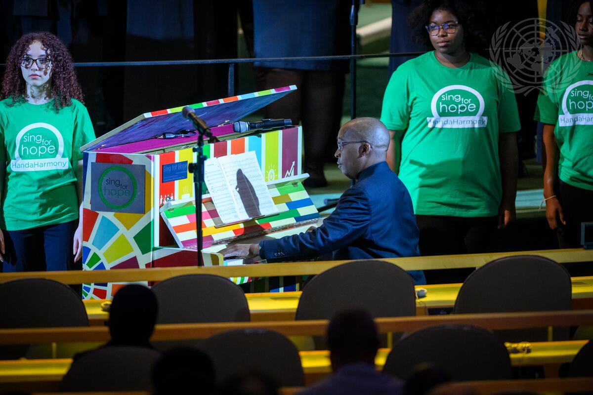 A musical performance by Sing for Hope Youth Chorus, Met Chorus singers and pianist David Watkins, conducted by Mr. Tilman Michael, during the high-level meeting of the General Assembly to commemorate the eightieth anniversary of the establishment of the United Nations.