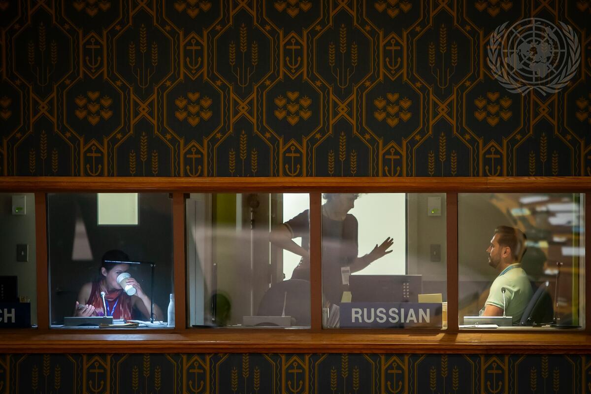 A view of the Russian interpreters' booths before the Security Council meeting on non-proliferation.