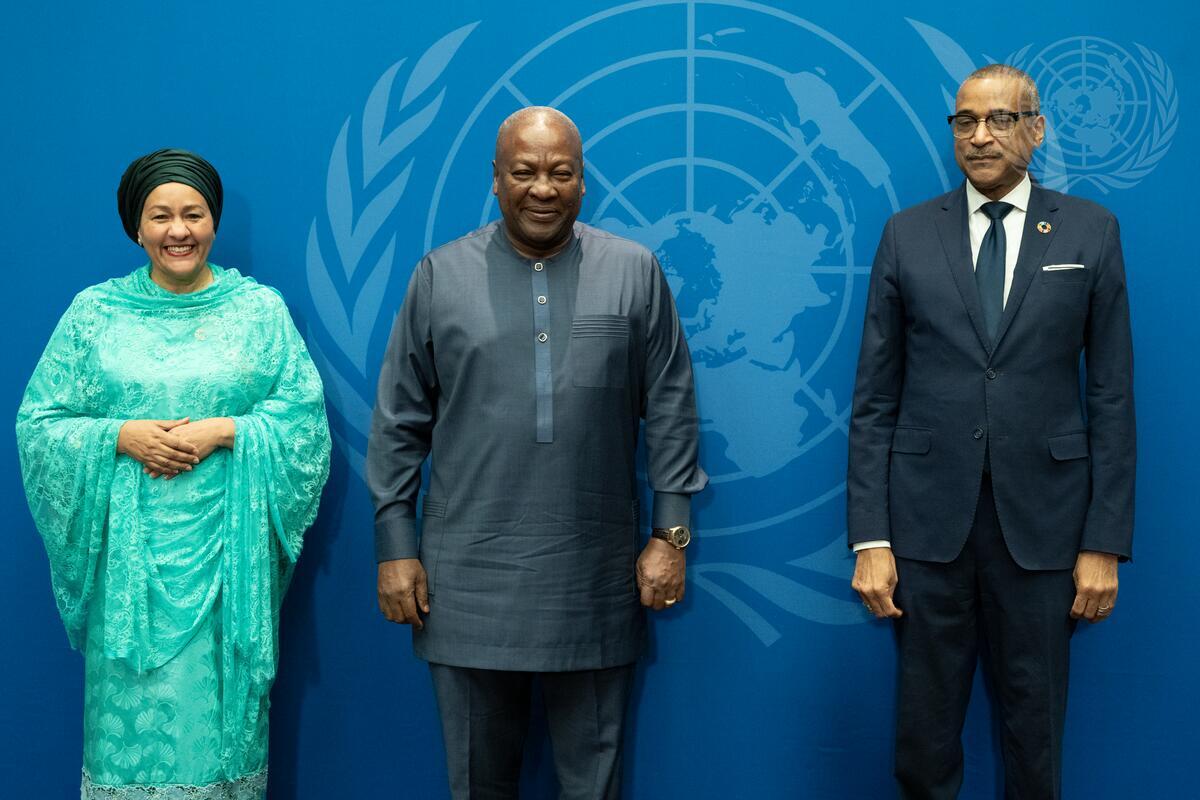 Deputy Secretary-General Amina Mohammed (left), and Courtenay Rattray (right), Chef de Cabinet of the Secretary-General greet global leaders on the second day of 80th General Assembly Debate.