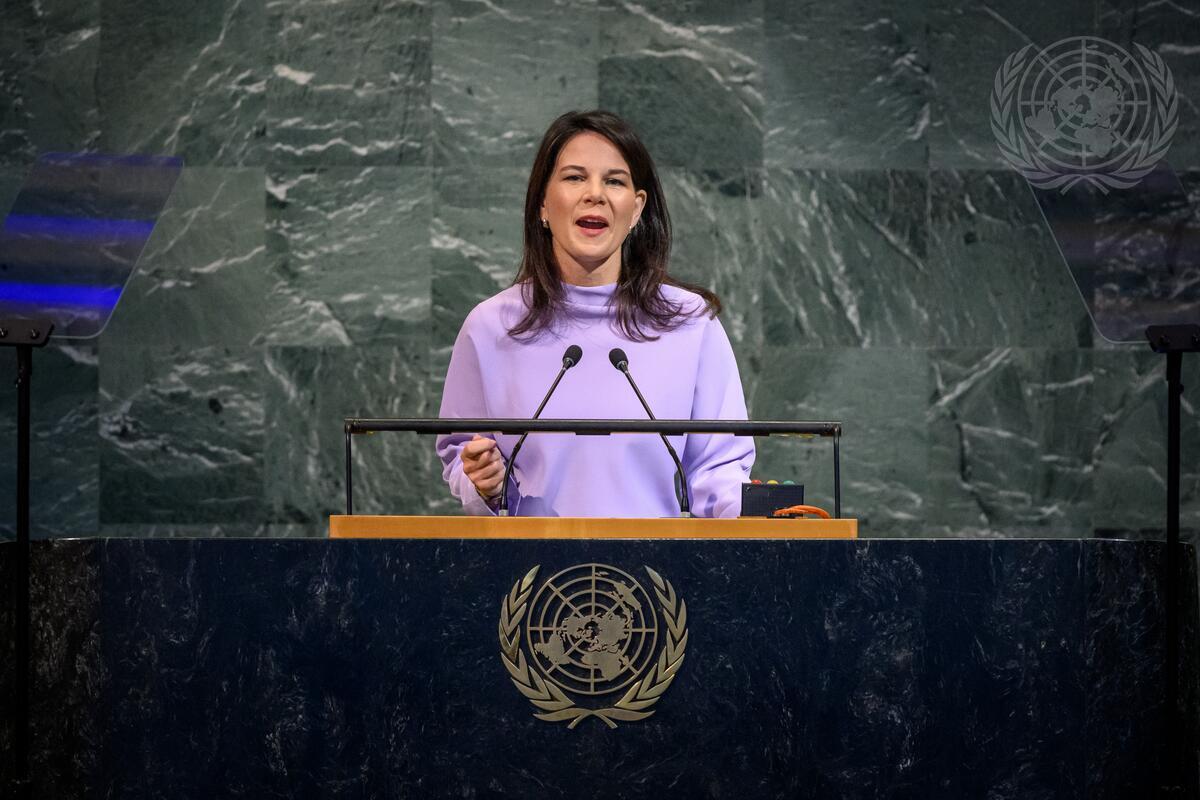Annalena Baerbock, President of the eightieth session of the United Nations General Assembly, addresses the high-level meeting of the General Assembly to commemorate the eightieth anniversary of the establishment of the United Nations.