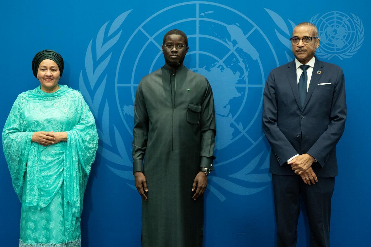 Deputy Secretary-General Amina Mohammed (left), and Courtenay Rattray (right), Chef de Cabinet of the Secretary-General greet global leaders on the second day of 80th General Assembly Debate.