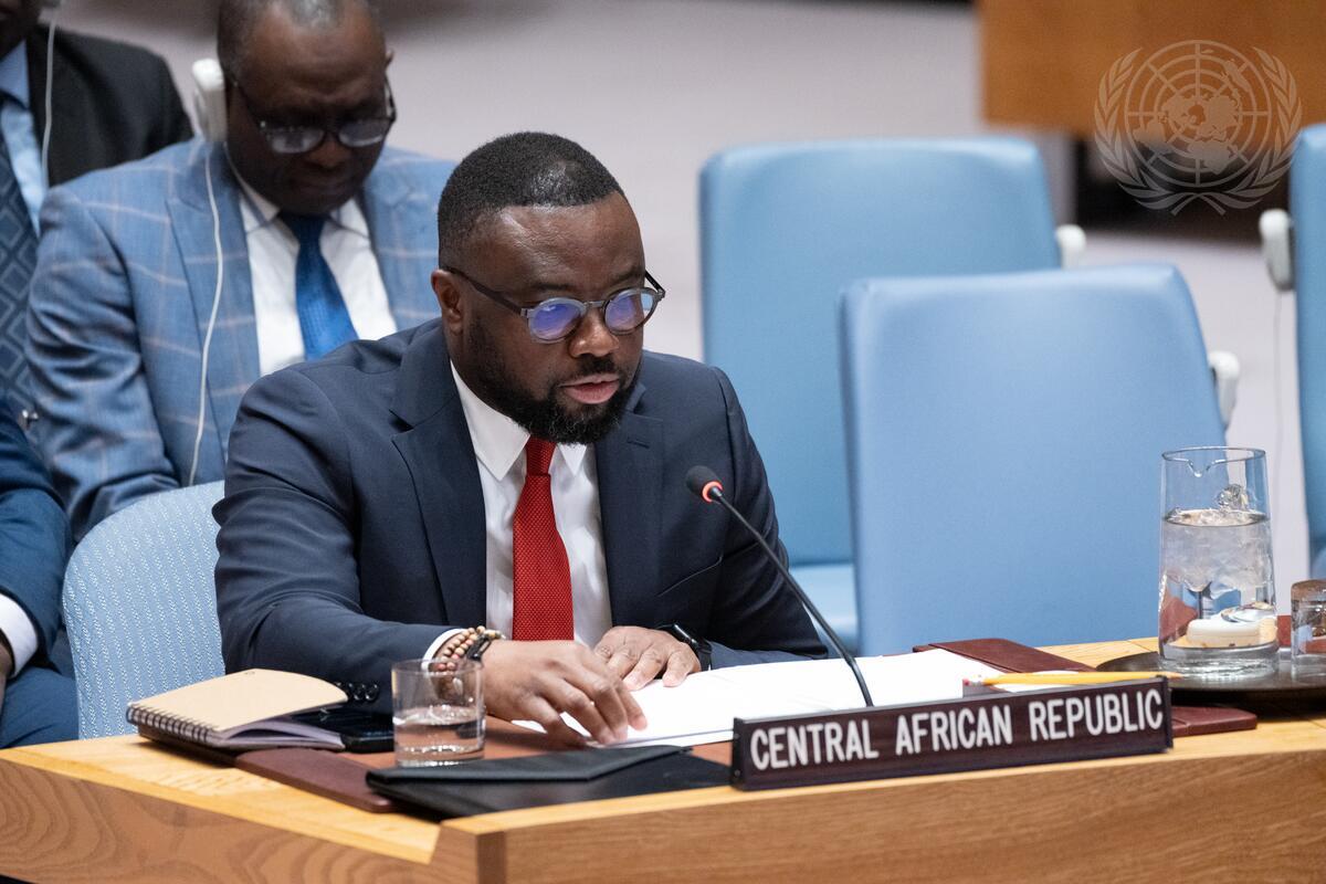 Marius Aristide Hoja Nzessioue, Permanent Representative of the Central African Republic to the United Nations, addresses the Security Council meeting on the situation in the Central African Republic.